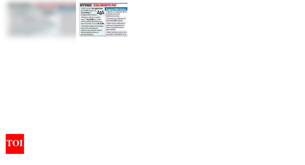 पुणे: आरोग्यवर्धिनी केंद्रांवरील केवळ 22 रिक्त पदांसाठी, पुणे महानगरपालिकेला (PMC) एमबीबीएस डॉक्टरांकडून 265 अर्ज प्राप्त झाले आहेत, ज्याने नागरी अधिकारी आणि आरोग्य तज्ञांना चकित केले आहे आणि एमबीबीएस व्यावसायिकांच्या टंचाईच्या दाव्याला आव्हान दिले आहे.आरोग्यवर्धिनी केंद्रे बाह्यरुग्ण दवाखाने म्हणून काम करतात. अधिका-यांनी सांगितले की या केंद्रांना एमबीबीएस-पात्र डॉक्टरांना आकर्षित करण्यासाठी अनेकदा आव्हानांना सामोरे जावे लागते आणि सामान्यत: BAMS प्रॅक्टिशनर्सचे कर्मचारी असतात. या पदांवर 15,000 रुपयांपर्यंत अतिरिक्त कामगिरी-आधारित प्रोत्साहनासह, दरमहा 25,000 रुपये माफक पगाराची ऑफर दिली जाते.पीएमसीच्या मुख्य सार्वजनिक आरोग्य अधिकारी डॉ. नीना बोराडे यांनी या प्रतिसादावर आश्चर्य व्यक्त केले आणि ते म्हणाले: “आम्हाला पहिल्यांदाच एमबीबीएस डॉक्टरांकडून उपलब्ध जागांपेक्षा जास्त अर्ज आले आहेत. त्यांच्यापैकी बरेच जण पदव्युत्तर प्रवेश परीक्षेची तयारी करत असतील किंवा एमबीबीएसनंतरच्या त्यांच्या बंधनांची पूर्तता करत असतील. सामान्यतः, आमच्याकडे एमबीबीएस अर्जदारांची कमतरता असते आणि आम्ही आरोग्यवर्धिनी केंद्रांचे व्यवस्थापन करण्यासाठी बीएएमएस डॉक्टरांची नियुक्ती करतो.“उपलब्ध 22 पदे नागरी संचालित OPDs, आरोग्यवर्धिनी केंद्रे आणि Apla Dawakhanas यांना नियुक्त केली जातील, जे प्रामुख्याने लसीकरण, नियमित तपासणी आणि प्राथमिक उपचार यासारख्या मूलभूत आरोग्य सेवा देतात.एमबीबीएस अर्जदारांच्या वाढीला प्रतिसाद म्हणून, इंडियन मेडिकल असोसिएशन (आयएमए) ने होमिओपॅथिक संघटना आणि काही सरकारी संस्थांनी केलेल्या दाव्याच्या विरूद्ध, एमबीबीएस डॉक्टरांची कमतरता नसल्याचा पुनरुच्चार केला. IMA च्या पुणे चॅप्टरचे अध्यक्ष डॉ. सुनील इंगळे म्हणाले, “यावरून असे स्पष्टपणे दिसून येते की भरपूर MBBS डॉक्टर सक्रियपणे नोकरी शोधत आहेत आणि सरकारी सुविधांमध्ये काम करण्यास इच्छुक आहेत. MBBS पदवीधरांची संख्या दरवर्षी वाढत आहे आणि नोकरीच्या संधी स्थिर राहिल्याने, इतर नागरी क्षेत्रातील संस्था आणि सरकारी संस्थांमध्येही असाच ट्रेंड लवकरच दिसून येईल. हे BHMS डॉक्टरांना ॲलोपॅथीची प्रॅक्टिस करण्यास परवानगी देण्यामागील तर्क सिद्ध करते.”महाराष्ट्र वैद्यकीय शिक्षण आणि औषध विभागाने गेल्या महिन्यात महाराष्ट्र वैद्यकीय परिषदेला (MMC) आधुनिक फार्माकोलॉजीमध्ये एक वर्षाचा प्रमाणपत्र अभ्यासक्रम पूर्ण केलेल्या होमिओपॅथिक प्रॅक्टिशनर्सची नोंदणी करण्यास सुरुवात केल्यानंतर एमबीबीएस डॉक्टरांच्या कमतरतेचे दावे समोर आले. अभ्यासक्रम पूर्ण केल्यानंतर होमिओपॅथना MMC मध्ये नोंदणी करण्याची परवानगी देण्याच्या सर