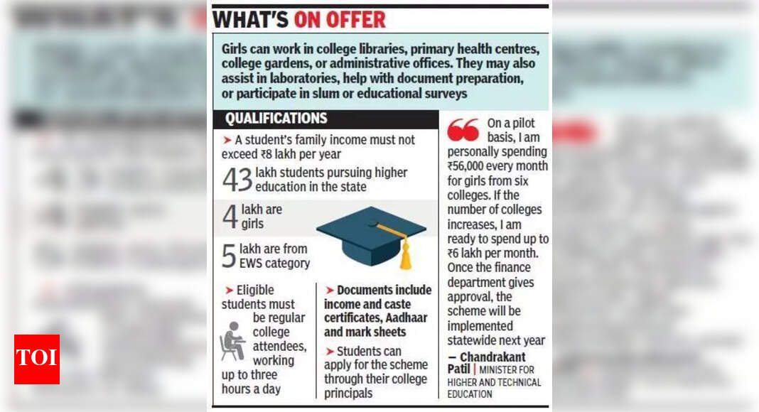 पुणे: शिक्षण विभागाने 2025-26 या शैक्षणिक वर्षापासून महाविद्यालयांमध्ये कमवा आणि शिका योजनेचा विस्तार करण्याचा प्रस्ताव ठेवला आहे, ज्यामध्ये पाच लाख महिला विद्यार्थ्यांना 2,200 रुपये मासिक आर्थिक सहाय्य देण्यात येणार आहे. आर्थिकदृष्ट्या दुर्बल विद्यार्थ्यांना आधार देणे आणि मुलींच्या उच्च शिक्षणास प्रोत्साहन देणे या उपक्रमासाठी अर्थ विभागाकडे 100 कोटी रुपयांची बजेट तरतूद प्रस्तावित करण्यात आली आहे. उच्च व तंत्रशिक्षण मंत्री चंद्रकांत पाटील यांनी याआधीच सहा महाविद्यालयांमध्ये पायलट सुरू केले असून, 500 विद्यार्थ्यांना दरमहा 56,000 रुपये निधी दिला आहे. या योजनेंतर्गत, महिला विद्यार्थिनी महाविद्यालयीन ग्रंथालय, कार्यालये किंवा सामुदायिक प्रकल्पांमध्ये दररोज तीन तास काम करू शकतात आणि त्यांना प्रति तास 60 रुपये मिळतील. पात्र अर्जदारांचे कौटुंबिक उत्पन्न 8 लाखांपेक्षा कमी असणे आवश्यक आहे.पाटील म्हणाले, “प्रायोगिक तत्त्वावर हा उपक्रम सुरू झाला असून, सहा महाविद्यालयांतील ५०० मुलींना याचा लाभ झाला आहे. २०२५-२६ शैक्षणिक वर्षापासून सुमारे पाच लाख मुलींना या योजनेचा लाभ मिळण्याची अपेक्षा आहे. ८४२ अभ्यासक्रमांमध्ये प्रवेश घेतलेल्या विद्यार्थ्यांना कॉलेज कॅम्पसमध्ये आणि बाहेर दोन्ही ठिकाणी अर्धवेळ काम करता येईल.”सध्या, ही योजना काही प्रादेशिक विद्यापीठांमध्ये कार्यरत आहे परंतु महाविद्यालयीन स्तरावर नाही. छत्रपती संभाजीनगर येथील डॉ.बाबासाहेब आंबेडकर मराठवाडा विद्यापीठ वर्षानुवर्षे यशस्वीपणे राबवत आहे.सावित्रीबाई फुले पुणे विद्यापीठातील विद्यार्थिनी संध्या जाधव म्हणाल्या, “सध्याची भरपाई अनेक वर्षांपासून निश्चित करण्यात आली आहे आणि महागाई आणि खर्चात झालेली वाढ पाहता 800 रुपये कधीच पुरेसे नव्हते. दर महिन्याला ही वाढ गरजूंसाठी खूप उपयुक्त ठरेल.”विद्यापीठांमध्ये सध्या विद्यार्थी तासाला ४० रुपये कमावतात. नवीन प्रस्तावानुसार, महाविद्यालयीन मुलींना प्रति तास 60 रुपये, 20 रुपयांची वाढ मिळेल. त्यांना 30 दिवसांमध्ये महिन्यातून जास्तीत जास्त 36 तास काम करण्याची परवानगी दिली जाईल आणि त्यांना मासिक 2,200 रुपये मिळतील.काय ऑफर आहे मुली कॉलेज लायब्ररी, प्राथमिक आरोग्य केंद्र, कॉलेज गार्डन किंवा प्रशासकीय कार्यालयांमध्ये काम करू शकतात. ते प्रयोगशाळांमध्ये मदत करू शकतात, दस्तऐवज तयार करण्यात मदत करू शकतात किंवा झोपडपट्टी किंवा शैक्षणिक सर्वेक्षणांमध्ये भाग घेऊ शकतातपात्रताविद्यार्थ्याचे कौटुंबिक उत्पन्न वर्षाला 8 लाख रुपयांपेक्षा जास्त नसावेराज्यात ४३ लाख विद्यार्थी उच्च शिक्षण घेत आहेत14 लाख मुली आहेत5 लाख EWS श्रेणीतील आहेत पात्र विद्यार्थी नियमित महावि